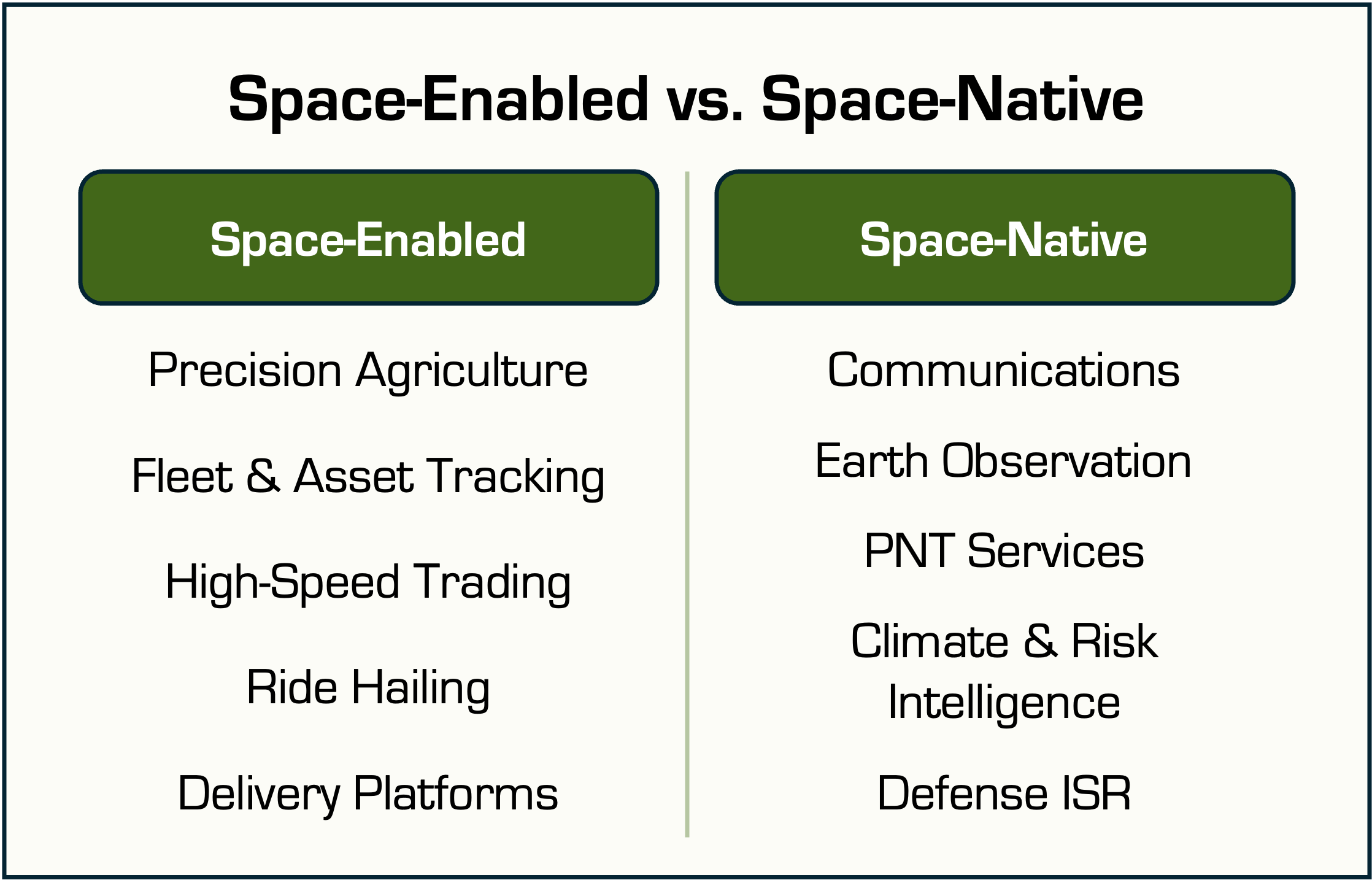Definition: Space-native markets are end-use markets where the underlying business model depends on space-derived capabilities at current cost and performance levels.